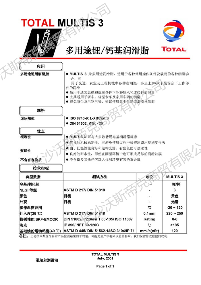 道達爾Multis3多用途鋰/鈣基潤滑脂  詳細說明