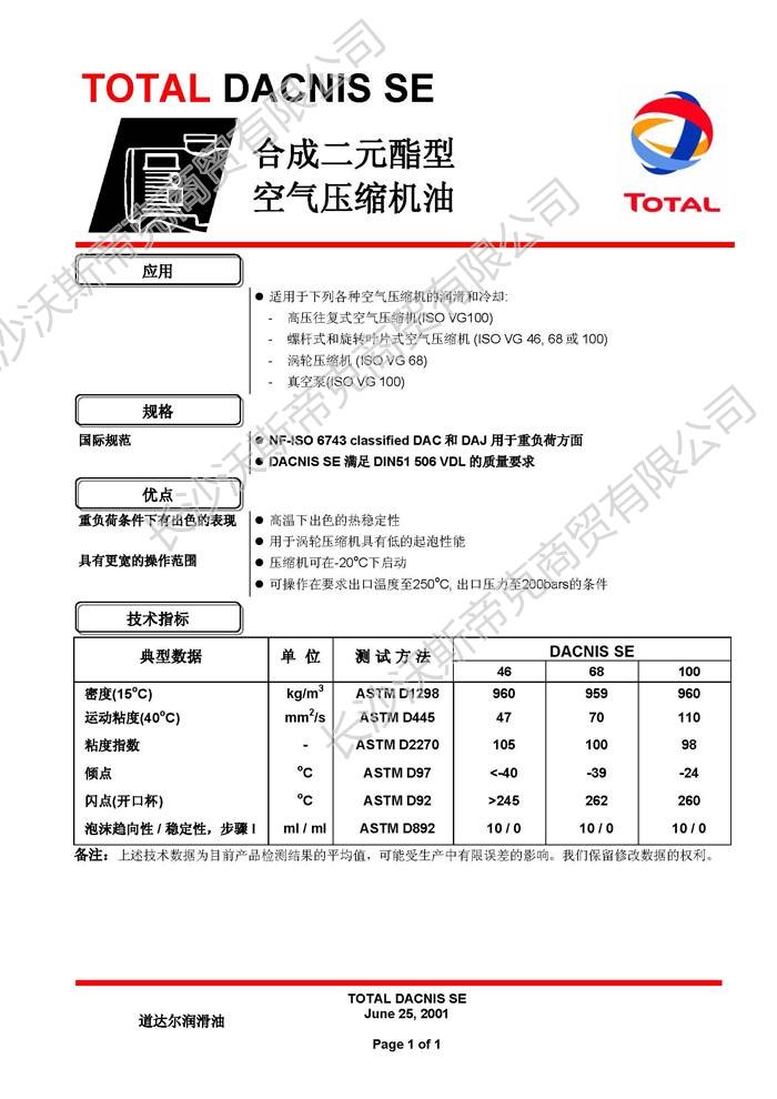 道達(dá)爾Dacnis SE空壓機(jī)油  詳細(xì)說明