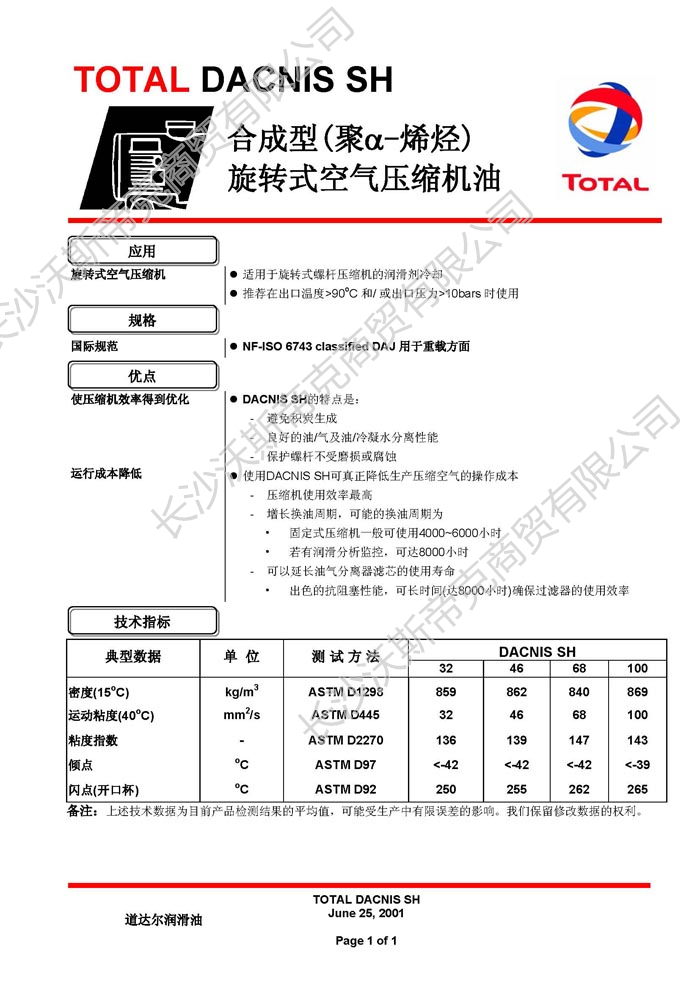 上一產(chǎn)品: 道達爾Dacnis SIS46合成空壓機油