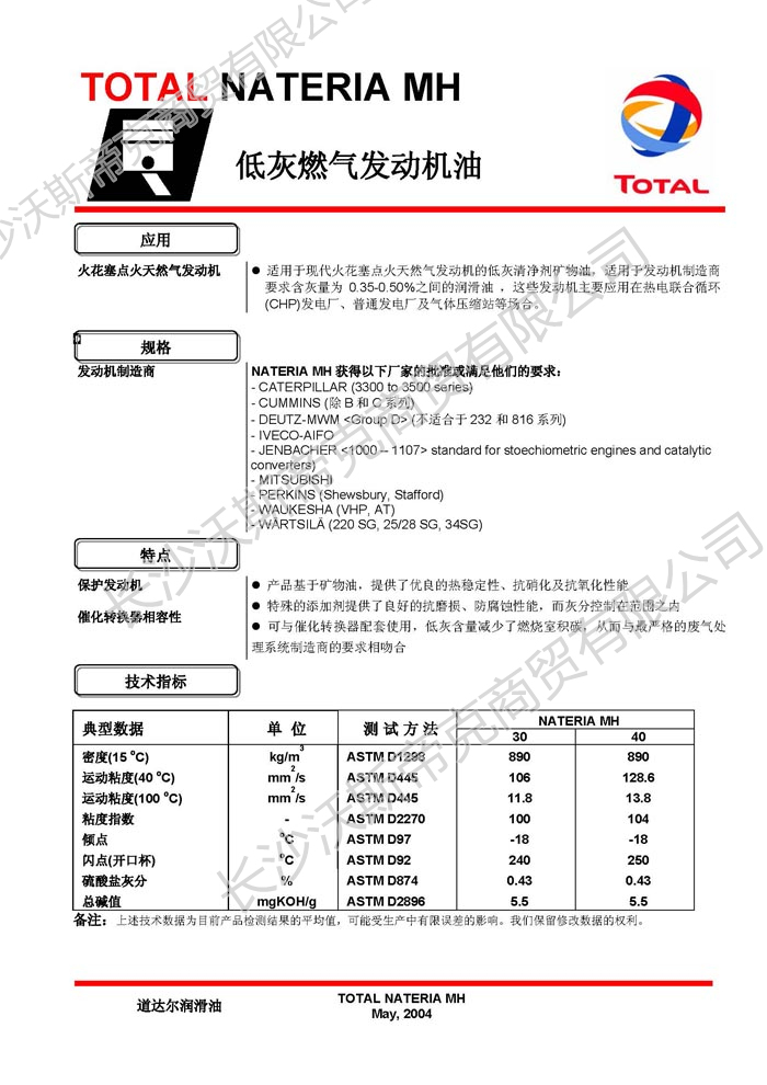 道達爾Nateria MH燃氣發(fā)動機油  詳細說明