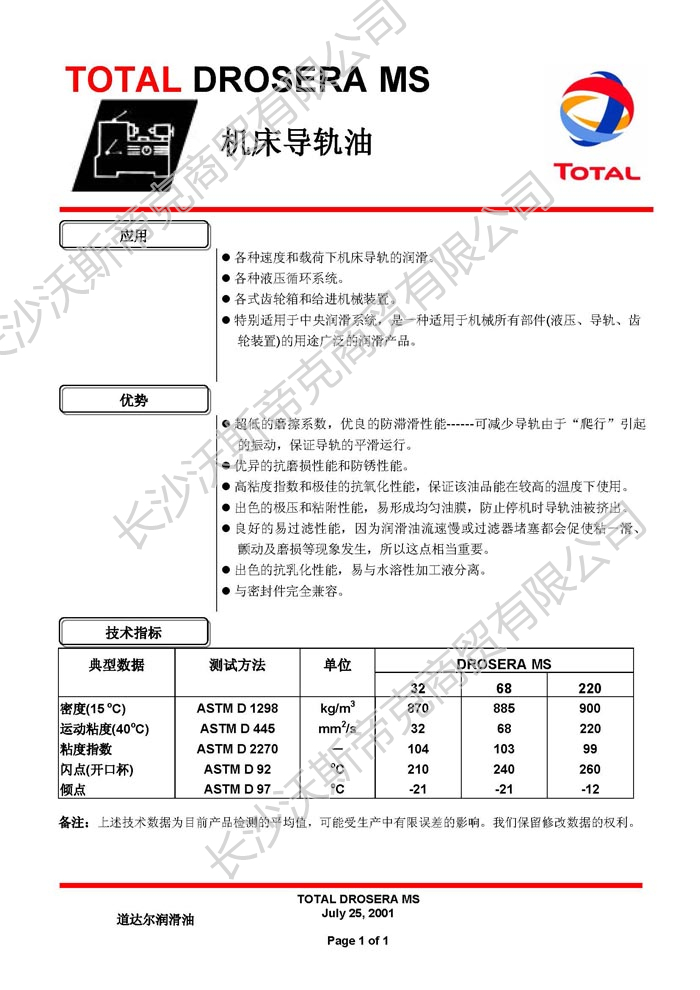 道達(dá)爾Drosera MS機(jī)床導(dǎo)軌油  詳細(xì)說(shuō)明