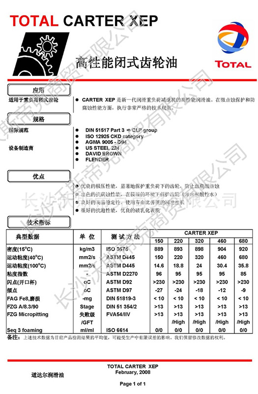 道達爾Carter XEP高性能閉式齒輪油 詳細說明