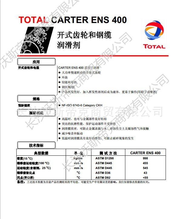 道達(dá)爾Carter ENS400開(kāi)式齒輪和鋼纜潤(rùn)滑劑 詳細(xì)說(shuō)明