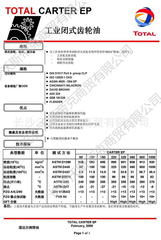 道達爾Carter EP工業(yè)閉式齒輪油 詳細說明