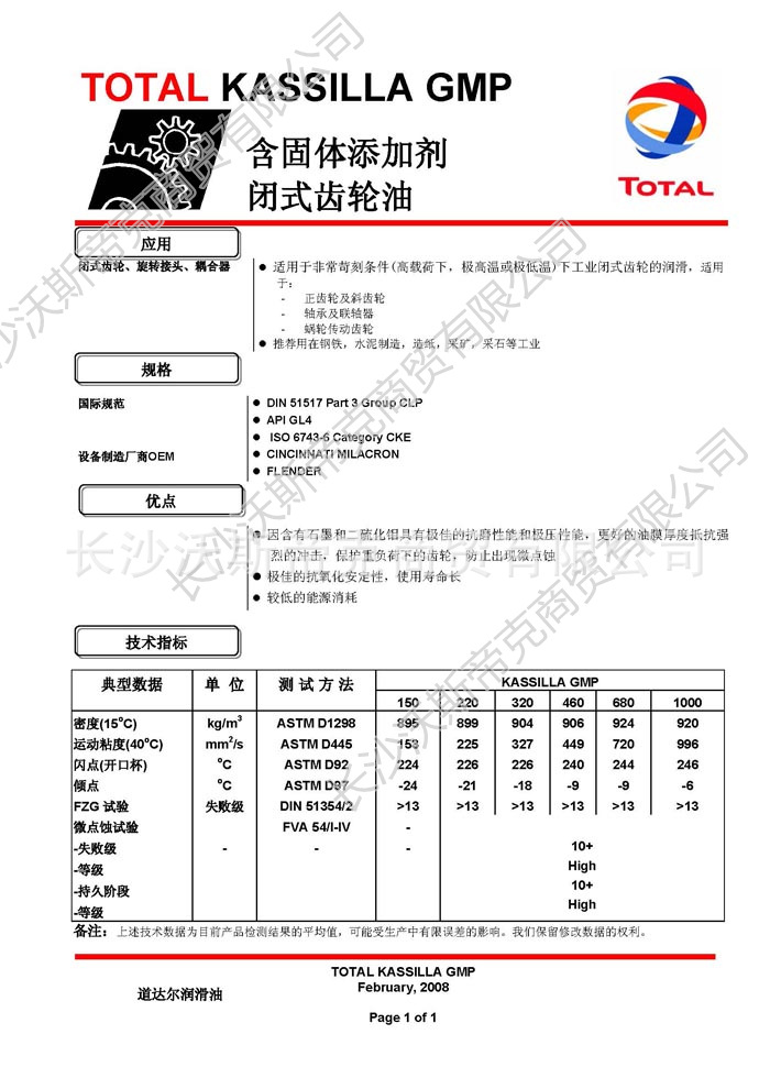 道達(dá)爾Kassilla GMP含固體添加劑閉式齒輪油 詳細(xì)說明