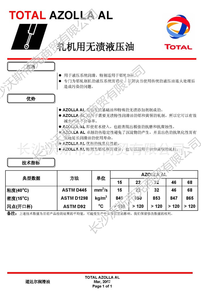 道達(dá)爾Azolla AL軋機(jī)用無漬液壓油 詳細(xì)說明