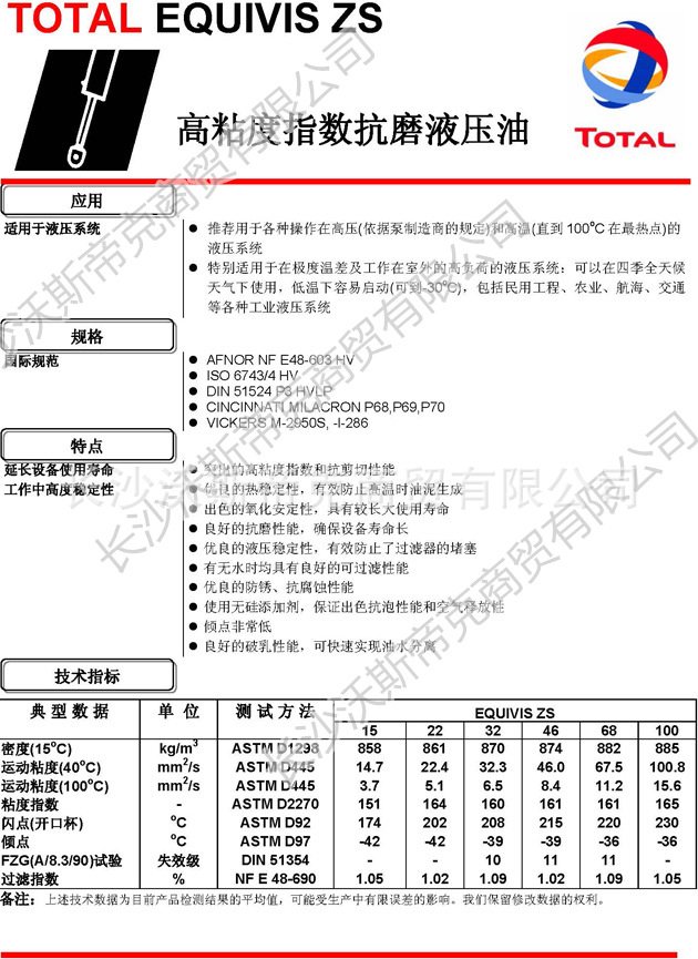 道達(dá)爾Equivis ZS高粘度指數(shù)抗磨液壓油 詳細(xì)說(shuō)明