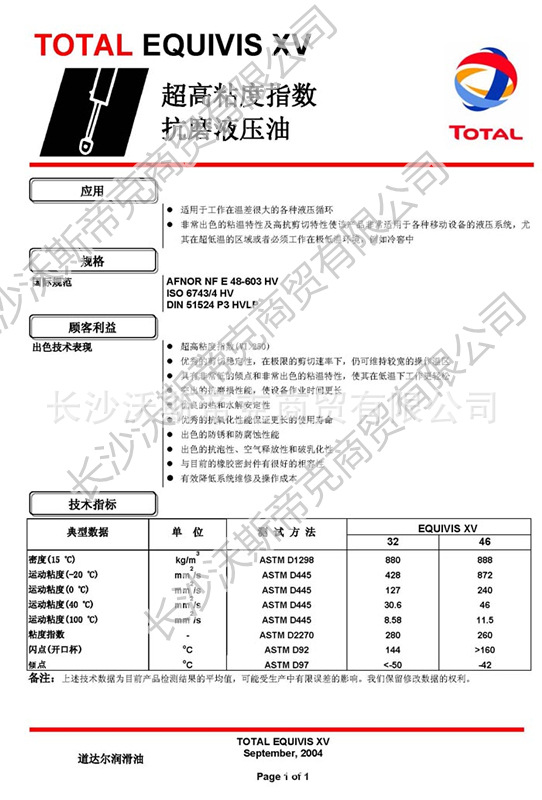 道達(dá)爾Equivis XV超高粘度指數(shù)抗磨液壓油 詳細(xì)說(shuō)明