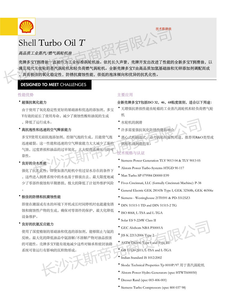 殼牌多寶T渦輪機油 詳細說明