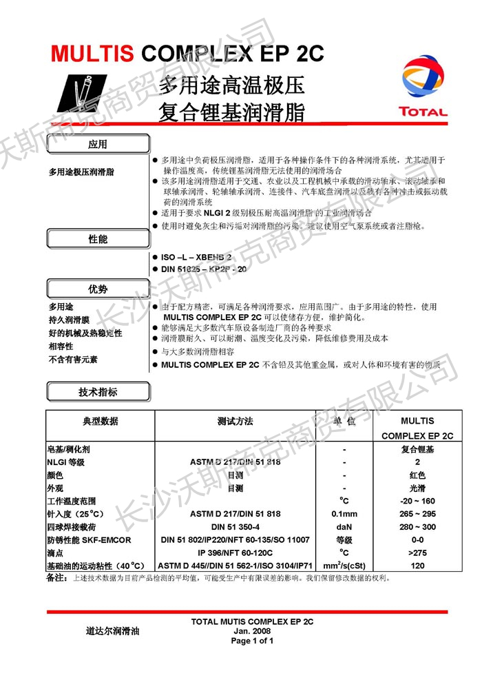 道達爾Multis Complex EP 2C復(fù)合鋰基脂  詳細(xì)說明