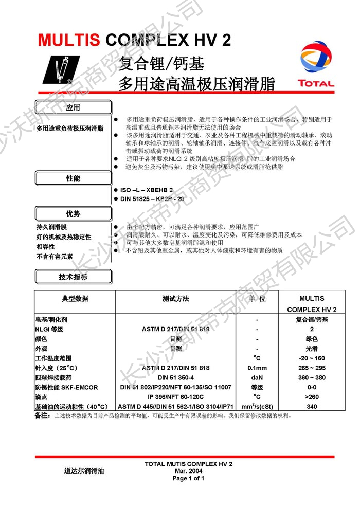 道達(dá)爾Multis Complex HV2壓潤滑脂 詳細(xì)說明