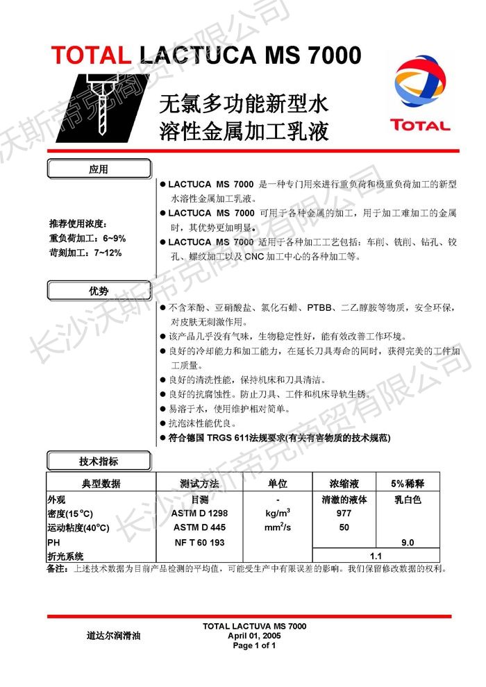 道達(dá)爾Lactuca MS7000金屬加工乳液  詳細(xì)說明