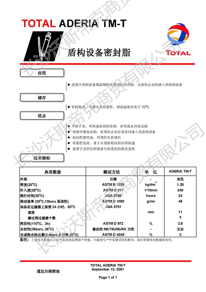 道達爾Aderia TM-T盾構設備密封脂 詳細說明