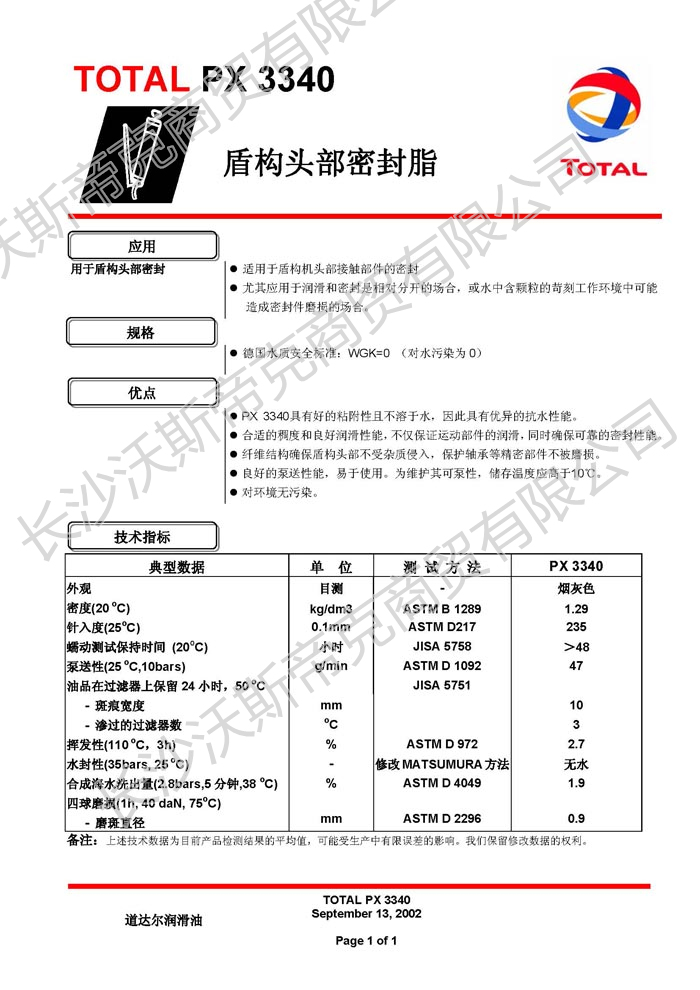 道達(dá)爾PX3340盾構(gòu)頭部密封脂