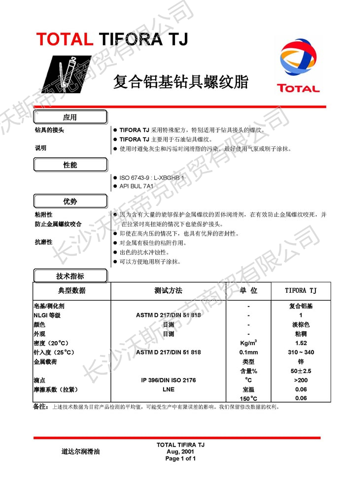 道達爾Tifora TJ鉆具螺紋脂  詳細說明