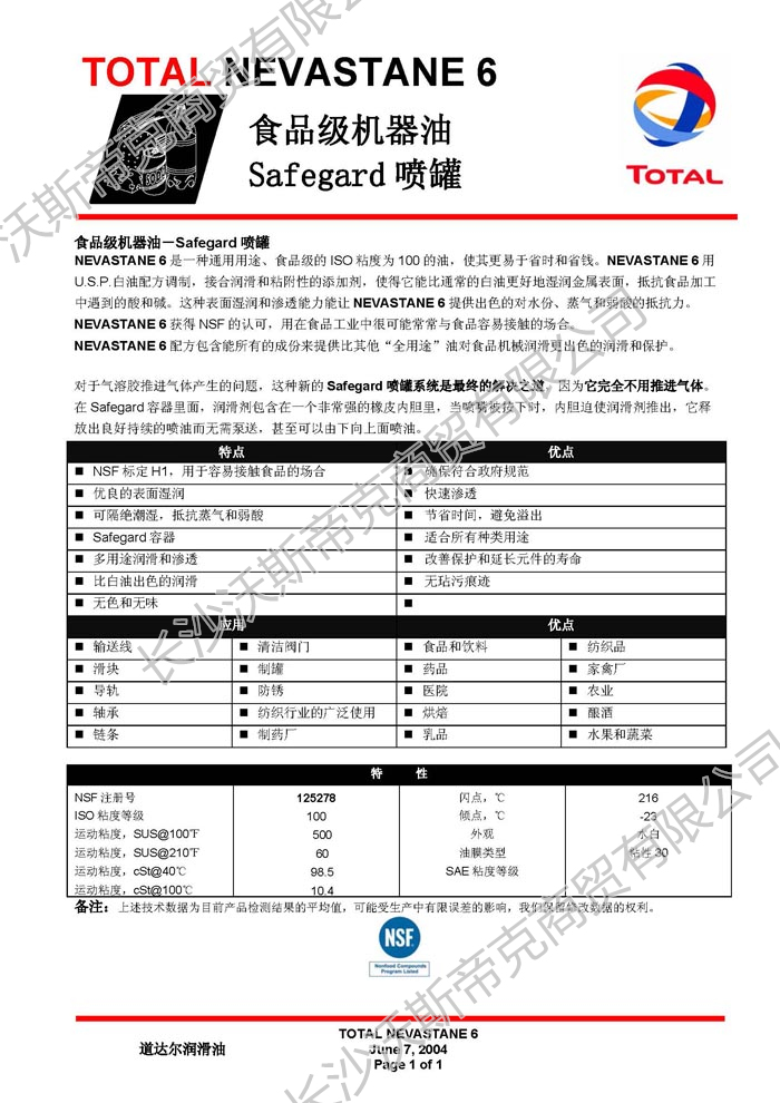道達(dá)爾Nevastane 6食品級(jí)機(jī)器油  詳細(xì)說明