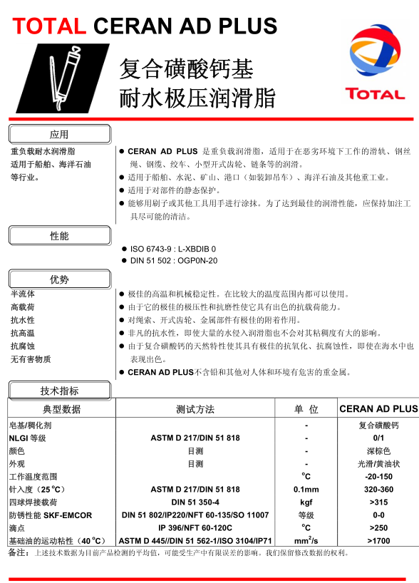 道達(dá)爾Ceran AD PLUS潤滑脂 詳細(xì)說明