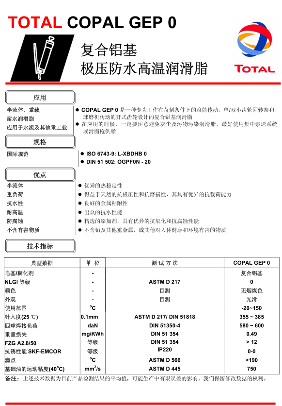道達(dá)爾COPAL GEP0高溫潤(rùn)滑脂 詳細(xì)說(shuō)明
