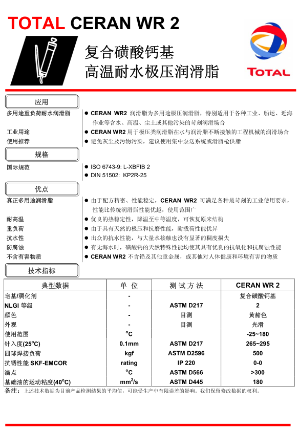 道達(dá)爾Ceran WR2潤(rùn)滑脂 詳細(xì)說(shuō)明